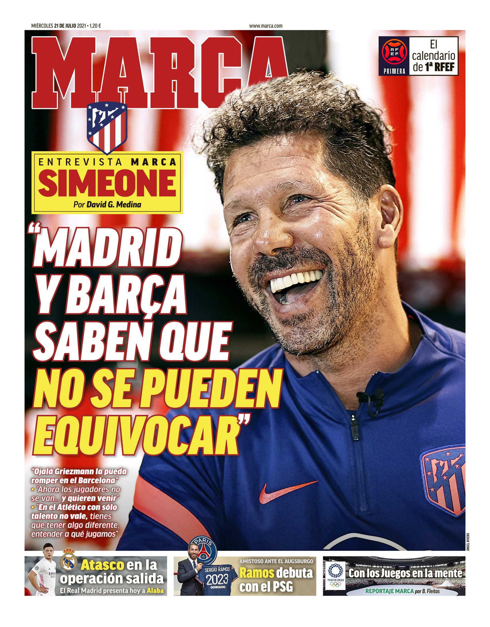 Marca Diego Simeone dedica tutta la sua attenzione con una serie di citazioni dell’allenatore dell’Atlético. “Real Madrid e Barcellona sanno di non poter sbagliare”, è il più largo. Altre citazioni di Simeone, “Spero che Griezmann riesca a Barcellona”E il “Attualmente i giocatori non se ne vanno, vogliono venire qui”E il “All’Atletico non basta solo il talento, bisogna avere qualcos’altro e capire come si gioca”. Anche Mark lo avverte lui è “Fermati all’uscita” dal Real Madrid. La squadra va ridotta, ma è difficile. Attualmente è composto da 28 giocatori. Potrebbe avere 25 anni ma Ancelotti preferisce lavorare con 23 persone. Ma soprattutto il Real Madrid ha bisogno di tagliare i costi e guadagnare dai giocatori. Il problema è liberarsene. Marca rileva che i casi di Jovic, Bale, Isco e Mariano sono particolarmente preoccupanti.