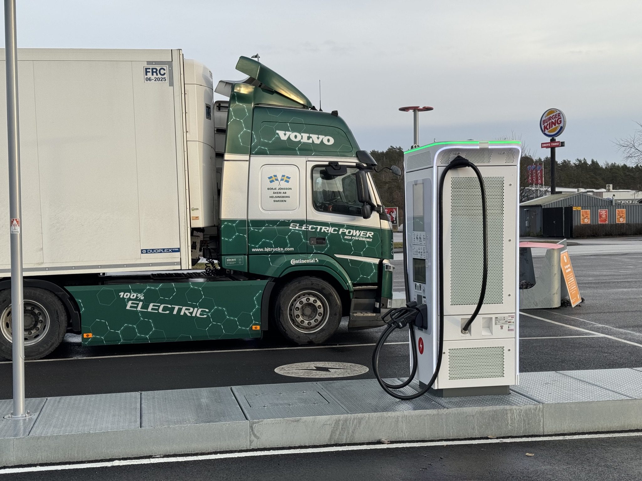 Camion elettrici che circolano sulle strade svedesi. Naturalmente non tutte le soluzioni sono adatte, ma molte modalità di trasporto seguono percorsi regolari e prevedibili ed è bello vedere i compressori per camion elettrici già in funzione e in uso. Uno di questi posti è Varberg Norra.