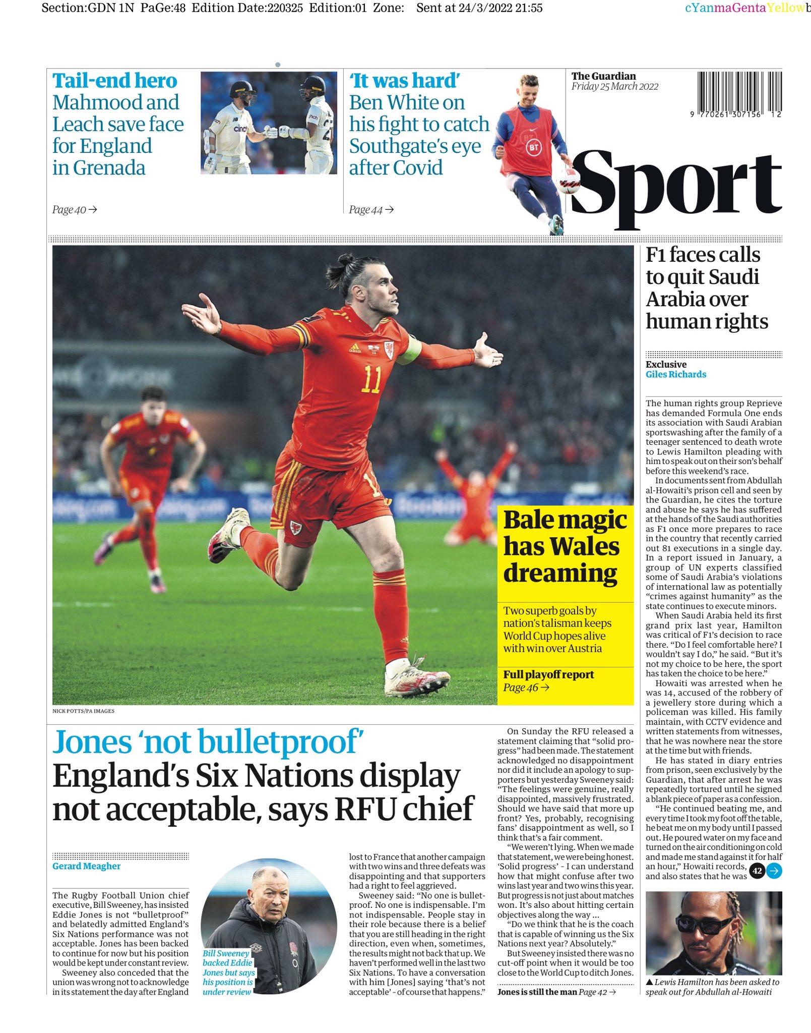 Specchio giornaliero esclama, “Incredibile” Dopo due gol di Gareth Bale, il Galles è passato alle qualificazioni ai Mondiali (2-1 contro l’Austria). Sebbene il Galles sia il Galles, il Galles domina i blocchi sportivi di Gran Bretagna e Victory England. È stato trovato anche Bale Rispondi alle critiche Soprattutto dallo spagnolo Marca, che ieri lo ha accusato di esserlo “Il parassita gallese” (Vedi Marka nei titoli di ieri mattina). “Non devo mandare un messaggio. Perde tempo. Questo è disgustoso e dovrebbero vergognarsi di se stessi., dice Bale. Sullo sfondo c’è la reazione della stampa di Madrid secondo cui Bale non potrà giocare a El Clasico questo fine settimana ma è pronto a giocare per il Galles. La priorità di Bale sia al Galles che al suo golf rispetto al Real Madrid ha rafforzato le critiche persistenti nel corso degli anni.