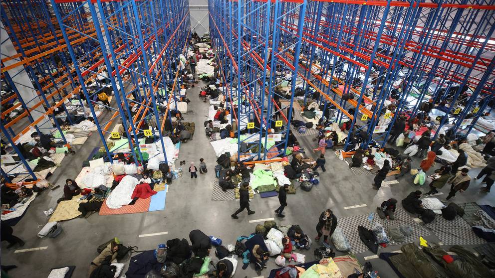I migranti al confine sono stati portati in un magazzino in Bielorussia. Foto: Leonid Shiglov / PA / TT