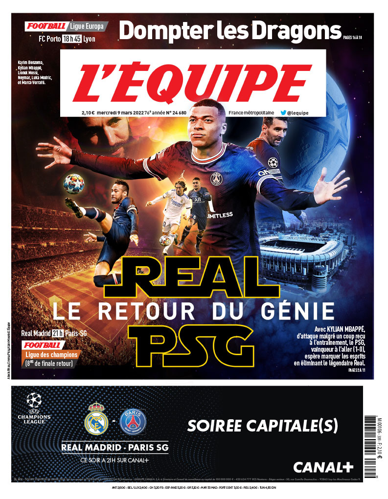 Il gruppo Stasera prende Real Madrid-Paris Saint-Germain come Star Wars. È stata utilizzata la linea di pellicola. invece di “Il ritorno dello Jedi” Il sottotitolo diventa “Il ritorno del genio”. È Kylian Mbappé. Nonostante il grande clamore, può giocare. Lo fa con Neymar e Lionel Messi. Tornano le tre stelle del Paris Saint-Germain. Sia L’Equipe che Le Parisien credono che Gianluigi Donnarumma partirà da una posizione all’altra al primo incontro.