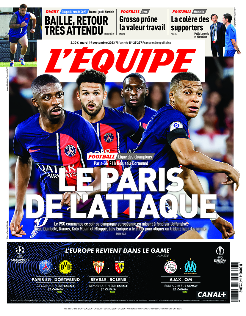 L’Equipe L’attenzione si concentra sull’abbondanza offensiva del Paris Saint-Germain in vista della partita di stasera contro il Dortmund. Gonzalo Ramos o Randall Kolo Mwani saranno titolari tra Ousmane Dembélé e Kylian Mbappé? L’Equipe crede nel portoghese Le Parisien Credi in francese. Ma anche il Paris Saint-Germain può essere vulnerabile agli attacchi. Non solo dal Dortmund, ma anche dalla UEFA. L’organizzazione lo farà Recensione vendite del Paris Saint-Germain Scritto da Abdou Diallo, Marco Verratti e infine Julian Draxler. Tutti e tre sono stati ceduti a club del Qatar per una cifra totale di circa 80 milioni di euro. Come sapete, anche il Paris Saint-Germain è di proprietà del Qatar. I media spagnoli, così come il critico del PSG e base della Liga Javier Tebas, sono già usciti in massa con accuse di frode. Il Paris Saint-Germain era già stato punito l’anno scorso con una multa dalla UEFA in relazione al Fair Play Finanziario. A proposito di Paris Saint-Germain e Qatar, il giocatore della nazionale Under 18 Elias Hosni Ieri è tornato in prestito all’Al Sadd. A proposito, L’Equipe mantiene il Manchester City così com’è Preferibile Solcar CL, nettamente superiore al quartetto formato da Real Madrid, Barcellona, Bayern Monaco e Inter. Altre novità di lunedì: pronto Fabio Grosso, pronto l’allenatore del Lione e pronto il portiere Salvatore Sirigu per il Nizza.
