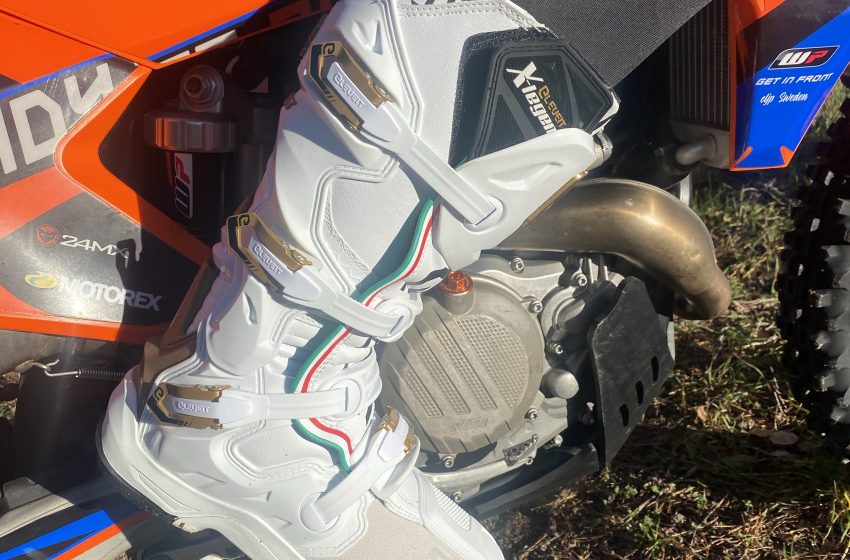 L’italiano Elevate è ancora relativamente sconosciuto in Svezia, ma ora l’olandese Vortex ha deciso di cambiarlo e importa gli stivali da cross di Elevate. Abbiamo provato il modello di punta X-Legend lo scorso fine settimana autunnale di fine novembre. Un caldo 16 gradi e un sole splendente, non quello che ti aspetteresti, ma l’abbiamo accettato con gratitudine. Gli stivali di Eleveit sono molto belli da vedere, bellissime strisce bianche e di buon gusto con la bandiera italiana con bei accenti dorati.